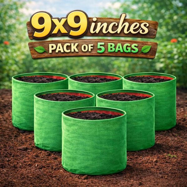 Round Grow Bag 9×9 – Premium Quality, Heavy-Duty, UV-Stabilized (240 GSM) HDPE Green Plant Bags- pack of 5